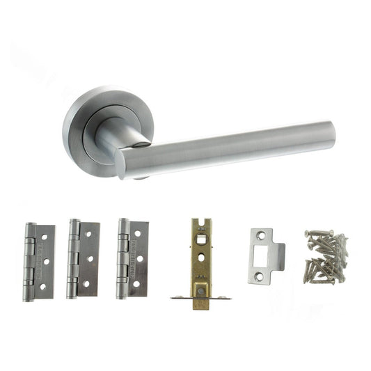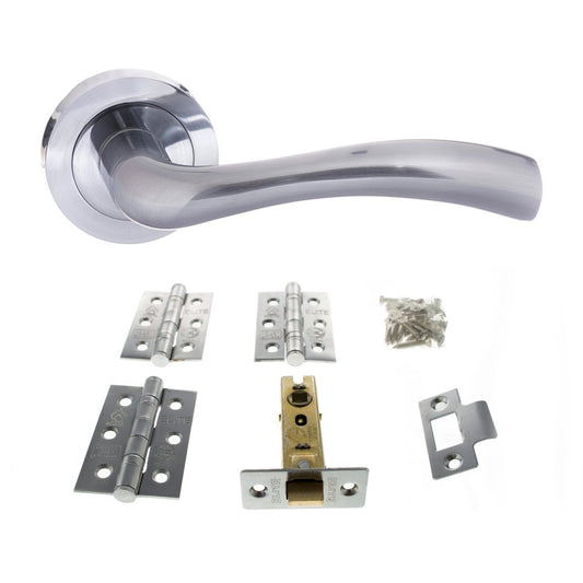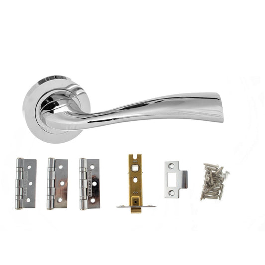 The Atlantic Eco Wave handle pack showcases modern simplicity at its finest. Designed with a soft, sweeping lever on a round rose backplate, the polished chrome finish enhances its curved silhouette. This pack includes internal handles, latch, hinges, and fixings – ideal for a unified, contemporary look across your home.