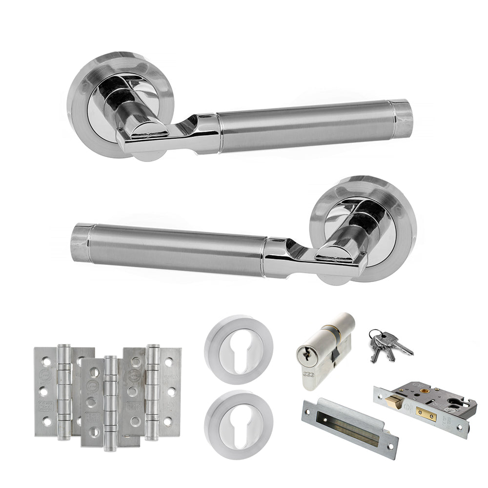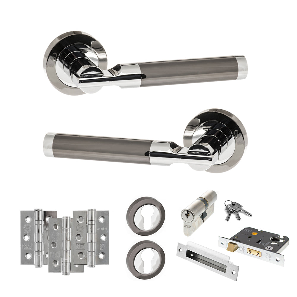 Key Euro Lock - A high security option for use on internal doors you’d like to lock with a key such as offices or internal porches. It comes with a pair of handles, Euro sashlock. 5 pin Euro cylinder, 3 keys, 2 Euro escutcheons and hinges.
