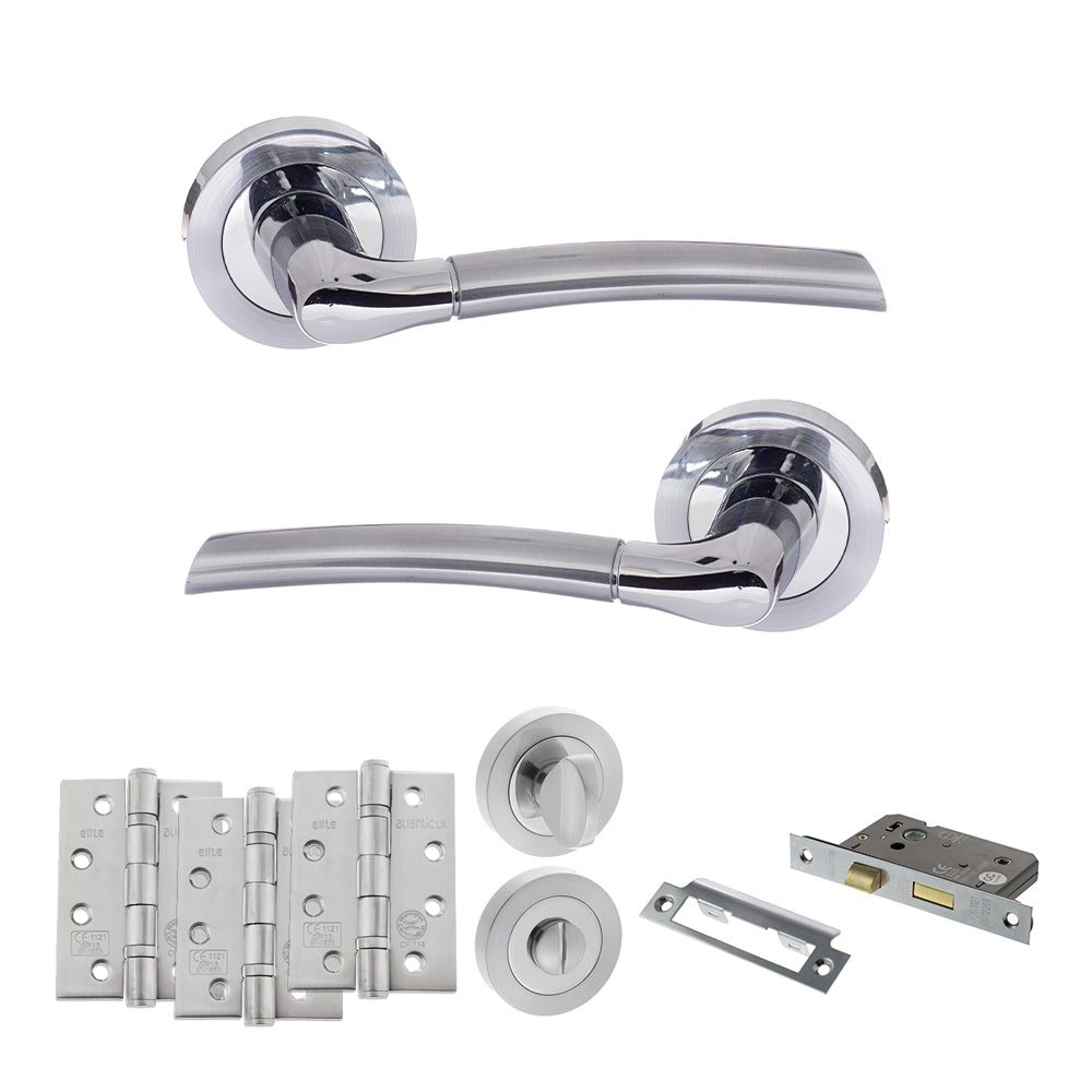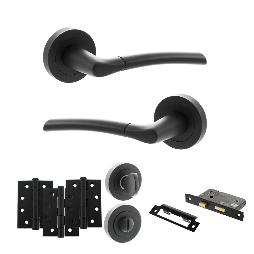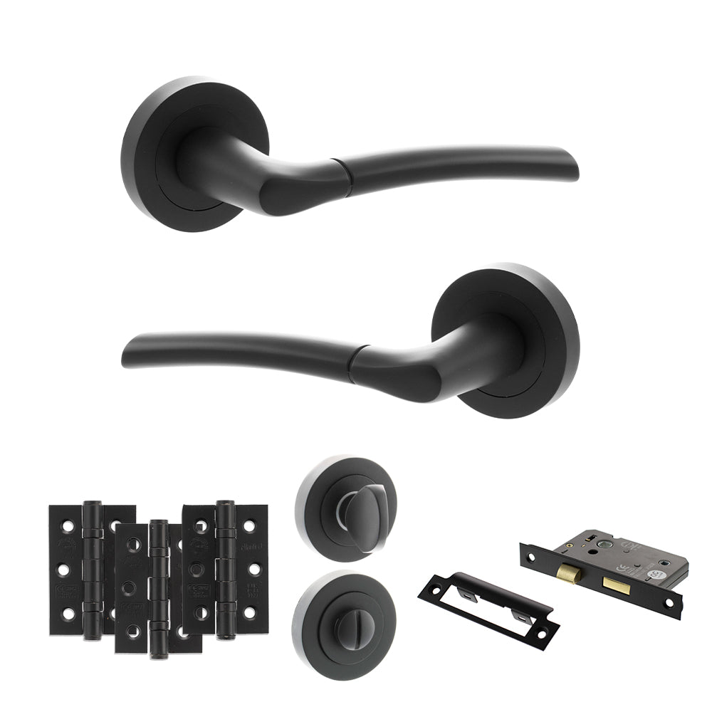 WC Bathroom Privacy Pack - For use on a toilet or bathroom door, it comes with a pair of handles, bathroom lock, turn & release and hinges.