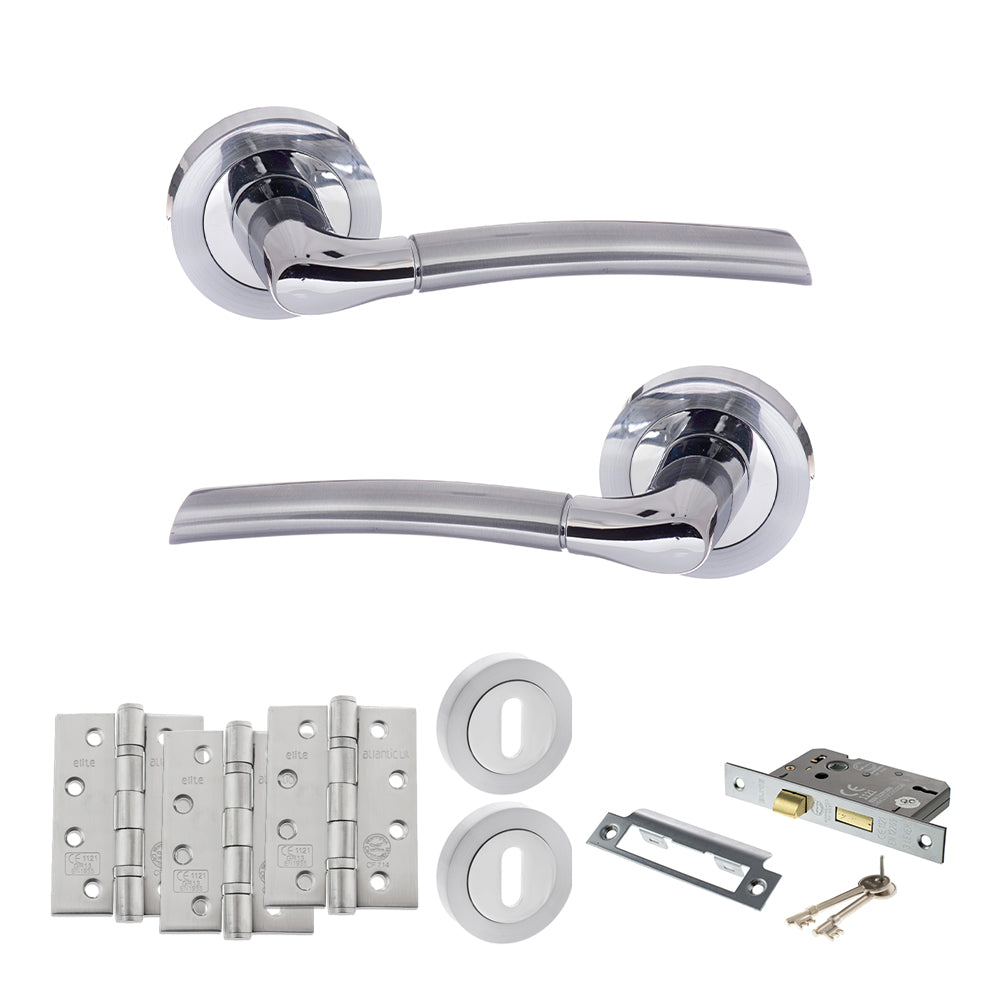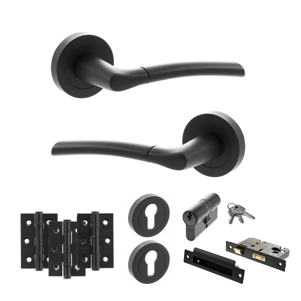 Key Euro Lock - A high security option for use on internal doors you’d like to lock with a key such as offices or internal porches. It comes with a pair of handles, Euro sashlock. 5 pin Euro cylinder, 3 keys, 2 Euro escutcheons and hinges.
